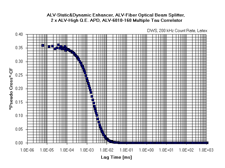 Test measurement using the ALV-Fiber Optical Beam Splitter, two ALV-High Q.E. APDs and the ALV-6010-160 Multiple Tau Correlator | ||||||||